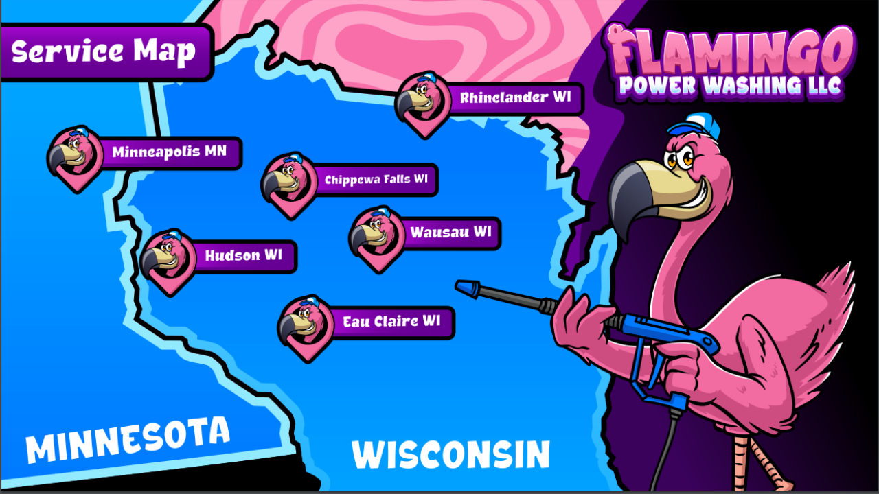 Welcome to Flamingo Power Washing LLC, a Native American-owned exterior cleaning company servicing Minnesota and Wisconsin. Our flock is dedicated to providing top-quality service with high tech cleaning equipment pushing for environmental sustainability. Specializing in power washing and soft washing techniques, we offer a range of services including window cleaning, commercial, residential, post construction cleaning and fleet washing.