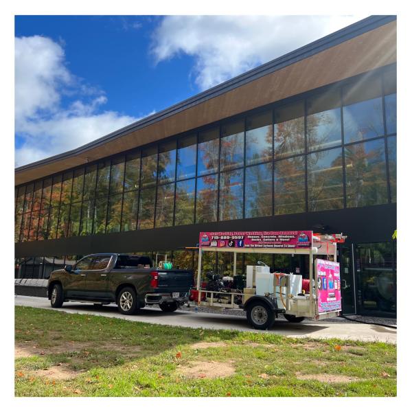 Reverse Osmosis & DI Pure Water System: Our advanced window cleaning system uses reverse osmosis & DI pure water, ensuring a streak-free finish. With 45-foot extension poles and various attachments, we can tackle any window cleaning job, no matter how challenging.